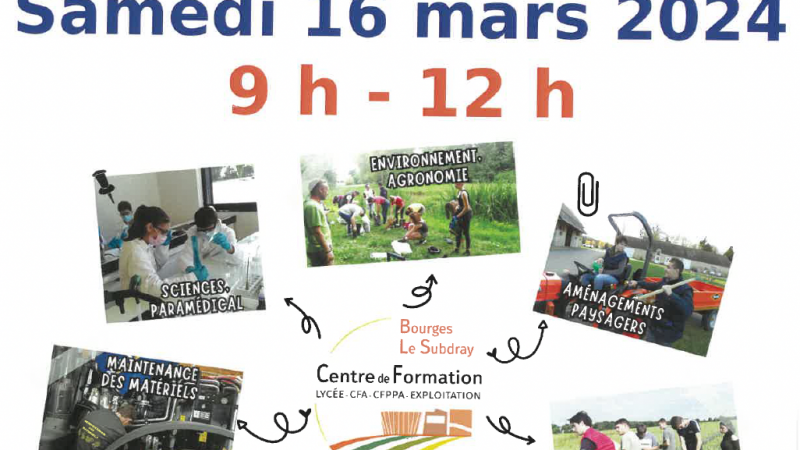 Lire la suiteLe Centre de Formation de BOURGES-LE SUBDRAY (lycée, CFA, CFPPA) organise ses portes ouvertes le samedi ...