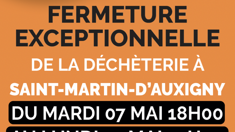 LA DÉCHÈTERIE DE SAINT-MARTIN-D’AUXIGNY SERA EXCEPTIONNELLEMENT FERMÉE DU MARDI 07 MAI 18H00 AU ...