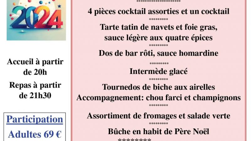 Lire la suiteRéservez dès maintenant votre réveillon de la Saint-Sylvestre organisé par le Comité des Fêtes ...