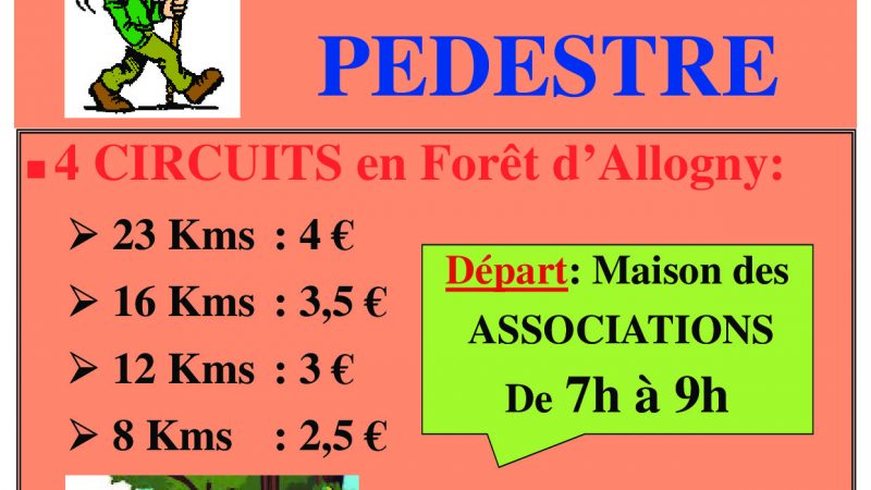 Lire la suiteOrganisée par le comité des fêtes. 4 circuits en forêt d’Allogny : 23, 16, 12 et 8 Km.