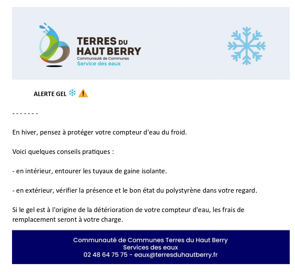 Alerte gel compteur d’eau