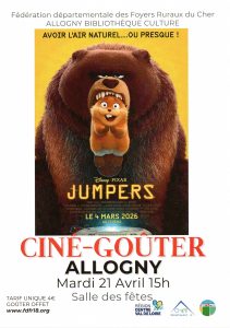– Le mardi 21 avril Ă 15h, sĂ©ance « cinĂ© goĂ»ter » pendant les vacances scolaires de Pâquesavec la projection du film DISNEY PIXAR « JUMPERS » avec un goĂ»ter offert aux enfants Ă la fin du film, tarif unique de 4€ pour tous les spectateurs.