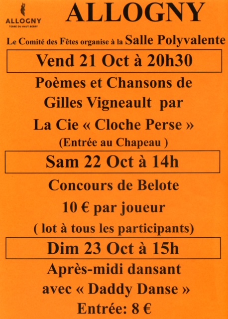 Vendredi-samedi-dimanche. Poèmes et Chansons, Concours de belote, après-midi dansant.