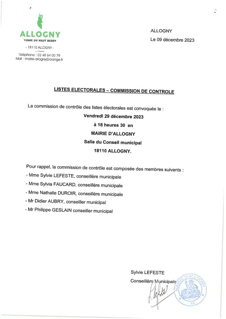 Réunion de la commission de contrôle des listes électorales