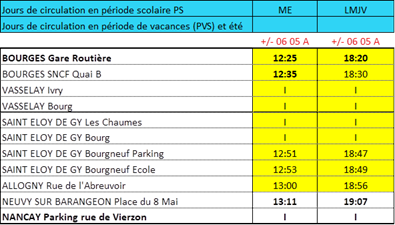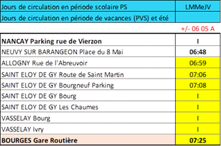 Dès le lundi 18 novembre prochain, les élèves de la commune d’Allogny pourront bénéficier des horaires ci-joints, dans le cadre de la ligne régulière 190